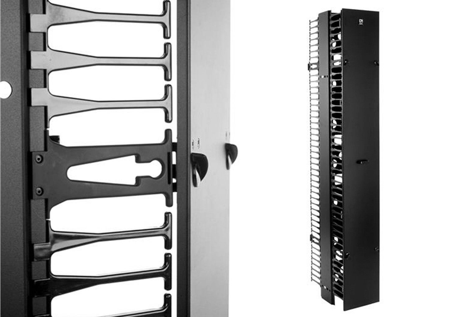 Need a tougher vertical manager with a slim footprint? The MCS-EFX Single-Sided features extended fingers and reinforced construction, making it CPI’s most robust single-sided solution. It’s ideal for enterprise and high-profile deployments that require superior cable support and lasting durability without taking up extra space.